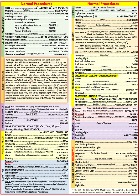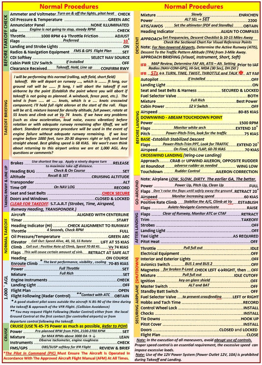 Cessna Skyhawk 172S G1000 Universal QRef, All In One Checklist (QRC) for Student Pilots