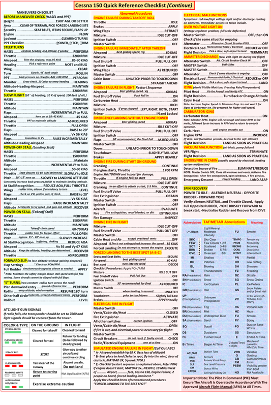 Cessna 150 Universal Extended QRef All In One Checklist for Student Pilots