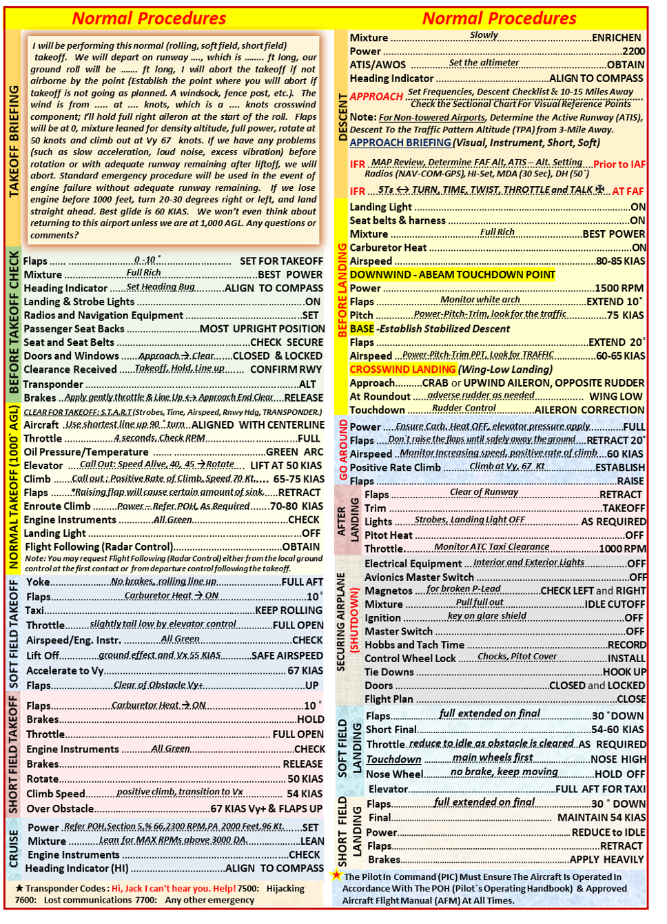 ✔ Why are the checklist procedures vital and absolutely essential? `Student pilots can read the checklist repeatedly to reinforce the routines that their flight instructors are trying to teach them. Arriving prepared is the best way to obtain maximum benefit from expensive flight instruction.`